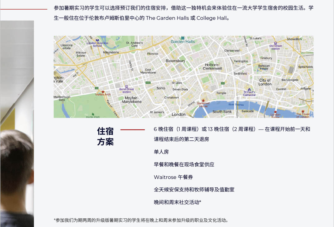 今年的项目比往年更好的是:项目分为一周或两周课程,同时推出高级版2周课程,包含了令人惊喜的升级版体验,包括:与行业内专业人士的私人社交晚宴、学生未来职业发展心理测试分析、linkedin 个人简历辅导和资料建设、特别团建活动、伦敦西区顶级音乐剧欣赏、业内人士出具的推荐信等。其中投资银行实践专业升级版的课程在伦敦政经学院LSE举行。